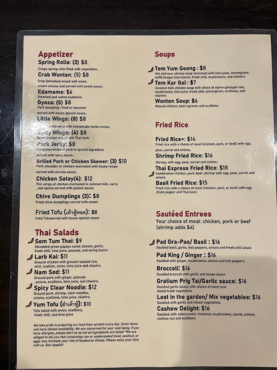 Thai Express By Rin Menu feels like one of those spots where you glance at the dishes and already know you’re in for something comforting. Tucked along 20553 Old Cutler Rd in Cutler Bay, this place leans into familiar Thai favorites while still giving each plate a little personality. As you flip through the options, you’ll notice how the bowls of noodles, fragrant curries, and quick stir-fries seem made for anyone craving bold flavors without any fuss.